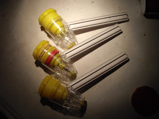 Even lighting the ship was another logistical headache to overcome. I needed to work out a way of distributing the light thru the egg windows evenly and came up with the idea of using light bar modules (left) made from angled push lights from the pound shop, wired together and set into cardboard tubes.